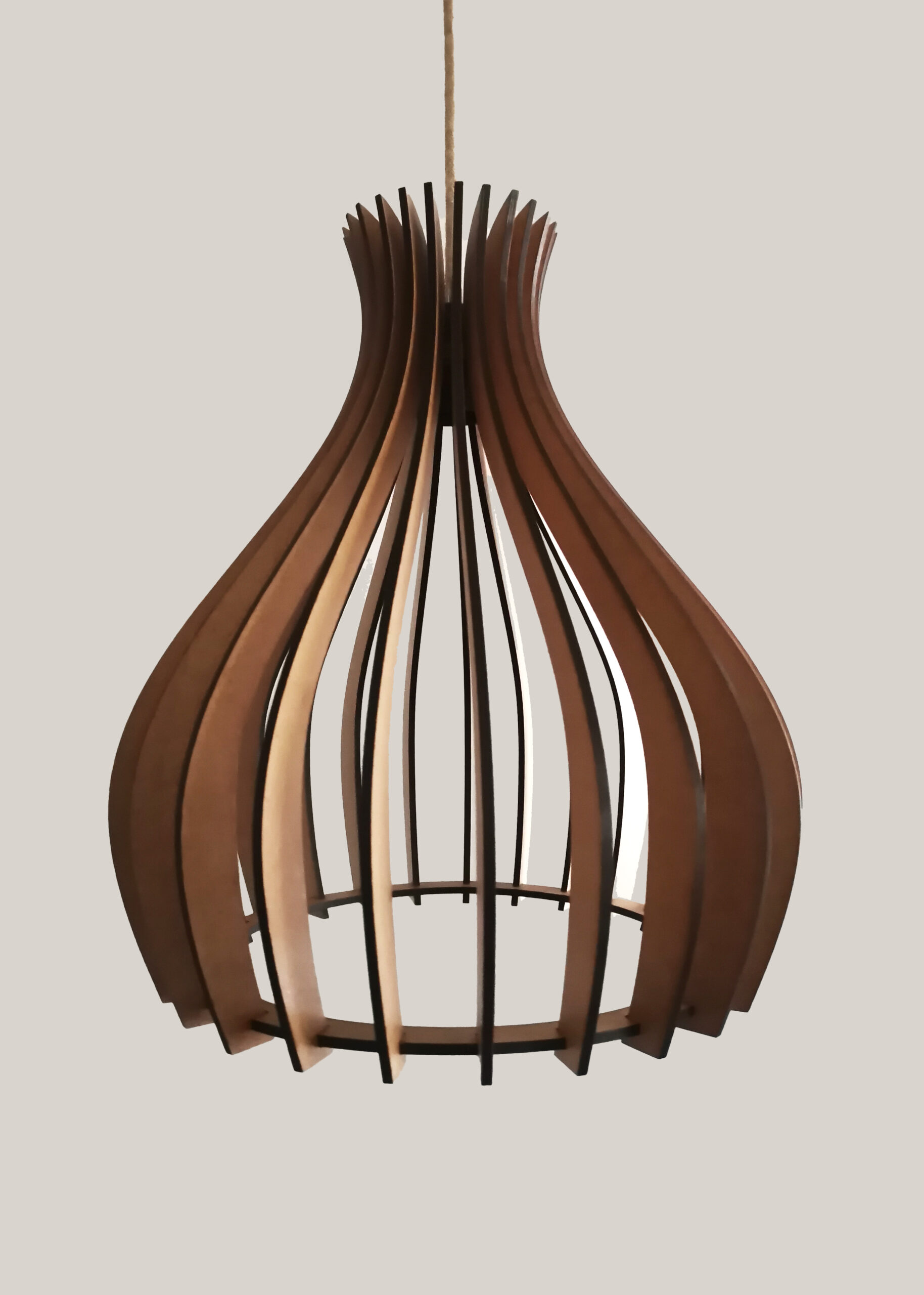 A sculptural pendant light made from laser-cut MDF wood, the Onion combines clean lines with organic form. It features a wooden rosette and an adjustable height, allowing it to suit a variety of spaces—from cozy corners to open ceilings. Bold yet minimalist, this piece adds warmth and personality to any room.